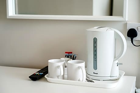 This room has fresh crisp linen, an en suite shower room with toiletries, a flat-screen TV and a hospitality tray.