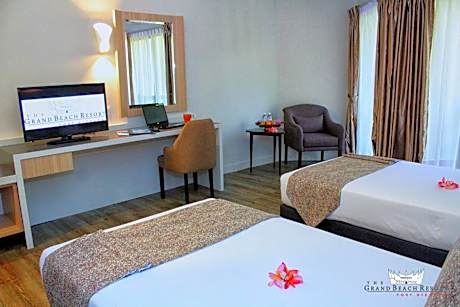 The Grand Beach Resort provides flawless service and all the necessary facilities for visitors.When arriving by car, you'll be grateful for the on-site complimentary parking at resort.The resort offers reception assistance, including luggage storage, to ensure guest satisfaction. Whether it's an extended stay or simply needing fresh attire, dry cleaning service and laundry service provided by resort ensures your cherished travel garments stay spotless and accessible.Smoking is permitted solely in the specified smoking zones allocated by resort. In order to ensure the utmost level of relaxation, the guestrooms feature an inviting design and are equipped with all basic necessities, creating a delightful stay experience.To ensure a pleasant stay, a selection of rooms at resort come furnished with linen service, blackout curtains and air conditioning, all designed with your ease in mind. Several chosen accommodations at The Grand Beach Resort have a balcony or terrace incorporated into the room design. In select rooms, visitors can enjoy a touch of amusement with the availability of daily newspaper, television and cable TV for their entertainment needs. Within specific rooms, a refrigerator, bottled water, a coffee or tea maker, instant coffee, instant tea and mini bar is conveniently available for your use.Understanding the significance of bathroom facilities in enhancing visitor contentment, resort offers a hair dryer and toiletries within a few chosen chambers. Start your day stress-free at The Grand Beach Resort as breakfast is made available for you on the premises. Visitors with specific dietary preferences can savor a variety of culinary styles at The Grand Beach Resort, featuring halal choices to accommodate their needs. Throughout the day and night, guests can enjoy light refreshments with the resort offering vending machines.Throughout the day, engage in the entertaining activities available at The Grand Beach Resort.Make sure to discover the readily available beach at resort. Unwind by the pool at resort and cherish a leisurely moment.