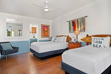 This boutique California hotel is on the beach and is one-half mile from the Santa Monica Beach and Santa Monica Pier. It offers free WiFi, a Spanish courtyard and Rock 'n Roll and classic California-themed rooms with surfboard headboards. Flat-screen cable TVs and a small fridge are standard in every room at Sea Blue Hotel. Each warmly decorated room has hardwood floors and vintage Hawaiian art prints. A hairdryer, an iron & ironing board are also included in all room types. The Sea Blue Hotel features a private courtyard with beach access and a garden. Guests can enjoy free coffee & tea in the lobby as well as a 24-hour front desk. Venice Beach is 1.3 miles from Sea Blue Hotel. Third Street Promenade is just 10 minutes’ walk away. University of California Los Angeles is 6 miles away.