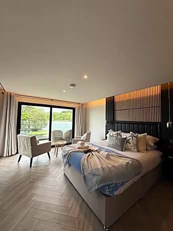 Located on the banks of Loch Auchenreoch, The Inn on the Loch offers bed and breakfast accommodations in this beautiful corner of South West Scotland. Free private parking is possible on site, and free Wi-Fi is accessible throughout. The Inn on the Loch offers a range of contemporary, rooms with attached bathroom as well as a self-contained two-bedroom apartment. All rooms have a TV with DVD player and tea and coffee making facilities, and the apartment has a separate lounge and kitchenette. The property’s own restaurant offers a menu based around seasonal, locally produced ingredients. Guests are welcome to enjoy a drink or meal overlooking the lake, on the property’s spacious terrace. Guests are welcome to go boating or fishing on the loch, and guests can also bring their own jet skis. Local cycling and walking trails can be reached in a few minutes from the property. The unspoiled coastline of Solway Firth is 15 miles from The Inn.