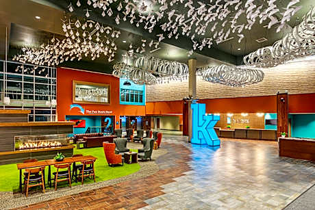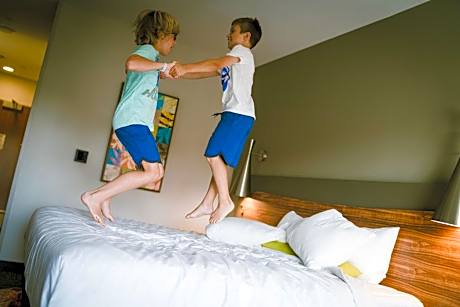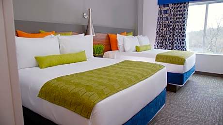 Located in the scenic Catskills Region, The Kartrite Resort and Indoor Waterpark features New York's largest indoor water park complete with rides, slides, swimming pools, and a surf simulator. All 324 guest suites are fitted with a microwave, fridge and coffee machine as well as a seating area and private bathroom. Select suites offer a terrace or balcony. The property has 6 on-site restaurants including Harvey’s Wallbanger serving pub fare and craft beers, Highline offering hot coffee and grab and go food, fine dining at Bixby’s Derby, Eat.Eat.Eat, which serves a buffet breakfast and signature dinners. Surfside Grill offers American cuisine in the waterpark along with Bar mez serving up pool side cocktails, while Pop's Sweet Shoppe is filled with candy, ice cream, fudge and so much more. The property offers a variety of activities including, an arcade with over 100 games, laser tag, a high ropes course, a mini bowling alley, a climbing wall, virtual reality experiences, hiking trails and more, All rooms come with 4 waterpark passes. Waterpark passes are required for all guests ages 3 and up. Additional passes are available for $75.00 per person/per day upon check-in. A fitness center, spa, 24-hour front desk and the Americana gift shop can all be found at Kartrite Resort and Indoor Waterpark. The casino at Resorts World is located 1.7 mi from the property.