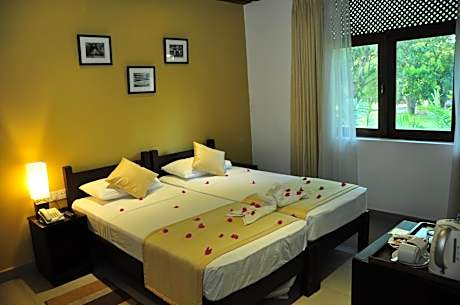 The Lakeside at Nuwarawewa is located in Anuradhapura only 2.5 mi away from SLAF Anuradhapura Airport. The accommodations welcomes guests with an outdoor swimming pool and a 24-hour front desk. Free internet access is available. Rooms feature modern furnishings and air conditioning. Each room is fitted with a TV, a mini-bar and a private bathroom with a hairdryer and free toiletries. Peaceful lake views can be enjoyed from all the rooms. The Lakeside at Nuwarawewa houses a beautiful garden and provides barbecue facilities. You can also make use of the bicycle rental services to get around the area and make travel arrangements at the tour desk. Free parking facilities are available on-site. An array of authentic Sri Lankan-style meals will be served at the restaurant. Guests can also opt in-room dining options.
