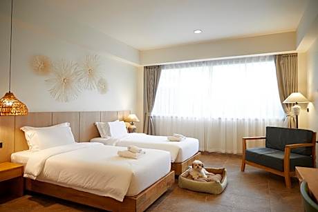 At The Leela Resort & Spa Pattaya, exceptional service and top-notch amenities create a memorable experience for guests. Complimentary internet access is available in the hotel to ensure you stay connected during your visit.Amenities at taxi offered by The Leela Resort & Spa Pattaya simplify the organization of your excursions, tourist activities, and other adventures in Pattaya.Complimentary parking is available for guests. Continuously receive the support you require through front desk amenities such as luggage storage and safety deposit boxes.Desire to unwind? Make the most of your visit at The Leela Resort & Spa Pattaya with accessible amenities such as daily housekeeping. For the health and well-being of all guests and staff, smoking is restricted exclusively to assigned zones.Accommodations come equipped with all the conveniences required for a restful night's slumber.A selection of rooms feature blackout curtains and air conditioning to ensure your comfort and convenience. A few accommodations in The Leela Resort & Spa Pattaya incorporate separate living room and balcony or terrace into their architectural arrangement.A few chosen rooms are equipped with television and cable TV to ensure guest amusement. In certain rooms, the hotel offers visitors access to a refrigerator, bottled water, instant coffee and instant tea.In the hotel, certain guest bathrooms come equipped with essential bathroom amenities, such as a hair dryer, toiletries and towels, ensuring a comfortable stay for guests. At The Leela Resort & Spa Pattaya, guests can take pleasure in the delightful recreational amenities provided for their entertainment. At The Leela Resort & Spa Pattaya, a wide array of amenities guarantees a fulfilling experience throughout your visit. Make your holiday truly memorable by taking a rejuvenating plunge into the pool. At the hotel fitness center, you have the option to engage in your daily exercise routine or simply alleviate your jet lag by breaking a sweat.