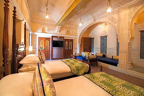 The Legacy Mandawa provides flawless service and all the necessary facilities for visitors.Stay connected with your associates, as complimentary Wi-Fi is available during your entire visit.To facilitate your arrival and departure, you can pre-book airport transfer services prior to checking in.The hotel offers taxi and car hire amenities for your ease in navigating around Mandawa.When arriving by car, you'll be grateful for the on-site complimentary parking at hotel. The hotel offers reception amenities including express check-in or check-out and luggage storage to ensure a comfortable stay for guests.Should you require it, the tours can even assist you in booking tickets and securing reservations for the finest shows and events in the vicinity.Whether it's an extended stay or simply needing fresh attire, dry cleaning service and laundry service provided by hotel ensures your cherished travel garments stay spotless and accessible.Your stay will be comfortable with the presence of room service and daily housekeeping as an in-room amenity for your relaxation and enjoyment.To ensure the well-being and convenience of all visitors, smoking is strictly prohibited throughout the entire hotel.Smoking is permitted solely in the specified smoking zones allocated by hotel. In order to ensure the utmost level of relaxation, the guestrooms feature an inviting design and are equipped with all basic necessities, creating a delightful stay experience.To ensure your satisfaction, certain rooms in the hotel come fitted with air conditioning for a more pleasant stay.In select rooms, visitors can enjoy a touch of amusement with the availability of daily newspaper, television and cable TV for their entertainment needs. Rest assured, quenching your thirst is not a concern with bottled water available in select accommodations.Understanding the significance of bathroom facilities in enhancing visitor contentment, hotel offers a hair dryer, toiletries and bathrobes within a few chosen chambers. Each day, arise to a delightful complimentary morning meal at The Legacy Mandawa. How about kicking off each day of your getaway with a delicious cup of coffee? At the hotel, relish in the invigorating taste of a freshly brewed, excellent coffee. Various excellent meal offerings at hotel ensure that enticing and easily accessible options are constantly available. Visitors wishing to create their personal culinary delights will appreciate the on-site shared kitchen provided at this establishment.Throughout the day, engage in the entertaining activities available at The Legacy Mandawa. Unwind effortlessly each day by exploring the spa, conveniently situated within the hotel.Unwind by the pool at hotel and cherish a leisurely moment.