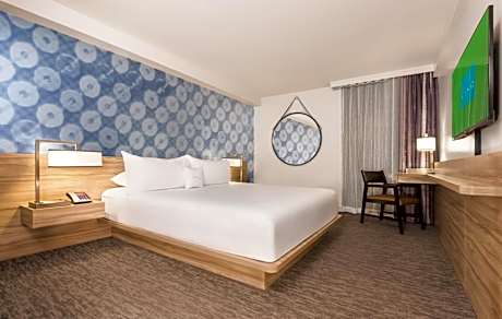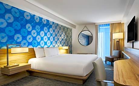 Guest rooms and suites incorporate contemporary design, featuring clean lines, bold accent colors, and functional layouts. Many rooms include tech-friendly amenities, such as USB charging ports and app-based room controls, providing a streamlined and comfortable stay.