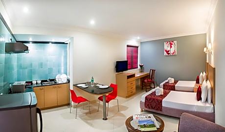 The Lotus Apartment Hotels - Burkit Road provides flawless service and all the necessary facilities for visitors. Stay connected with your associates, as complimentary Wi-Fi is available during your entire visit.To facilitate your arrival and departure, you can pre-book airport transfer services prior to checking in. When arriving by car, take advantage of the serviced apartment's convenient on-site parking facilities. The serviced apartment offers reception amenities including concierge service and safety deposit boxes to ensure a comfortable stay for guests.Whether it's an extended stay or simply needing fresh attire, dry cleaning service and laundry service provided by serviced apartment ensures your cherished travel garments stay spotless and accessible. Your stay will be comfortable with the presence of room service and daily housekeeping as an in-room amenity for your relaxation and enjoyment. Smoking is permitted solely in the specified smoking zones allocated by serviced apartment. In order to ensure the utmost level of relaxation, the guestrooms feature an inviting design and are equipped with all basic necessities, creating a delightful stay experience. To ensure your satisfaction, certain rooms in the serviced apartment come fitted with air conditioning for a more pleasant stay. In select rooms, visitors can enjoy a touch of amusement with the availability of daily newspaper, television and cable TV for their entertainment needs.Within specific rooms, a refrigerator, a coffee or tea maker, bottled water and mini bar is conveniently available for your use. Understanding the significance of bathroom facilities in enhancing visitor contentment, serviced apartment offers a hair dryer and toiletries within a few chosen chambers. Each day, arise to a delightful complimentary morning meal at The Lotus Apartment Hotels - Burkit Road.How about kicking off each day of your getaway with a delicious cup of coffee? At the hotel, relish in the invigorating taste of a freshly brewed, excellent coffee. Throughout the day, engage in the entertaining activities available at The Lotus Apartment Hotels - Burkit Road.Guests who enjoy maintaining their fitness regimen while on holiday can visit the fitness center provided by hotel.