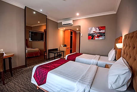 Experience an abundance of unparalleled facilities and features at The Mirah Hotel Bogor .Maintain seamless communication using the complimentary Wi-Fi at hotel. Discovering Bogor becomes even more accessible through the taxi and shuttle amenities provided at the hotel.For visitors traveling by automobile, complimentary parking is available.During your stay at this fantastic hotel, the attentive front desk personnel can provide you with a range of amenities such as concierge service, express check-in or check-out, luggage storage and safety deposit boxes.At the hotel, utilize the on-site dry cleaning service and laundry service to maintain your beloved travel attire fresh, allowing you to bring fewer clothes.Craving relaxation? Make the most of your stay at the The Mirah Hotel Bogor with convenient amenities like 24-hour room service, room service and daily housekeeping at your disposal. Kindly note that smoking is prohibited in the hotel to ensure fresher air for all visitors.At The Mirah Hotel Bogor , every guestroom is provided with convenient amenities and fittings to ensure a comfortable stay.Enhance your experience at hotel with the knowledge that certain rooms are equipped with linen service, blackout curtains and air conditioning for your convenience. A few accommodations within The Mirah Hotel Bogor offer unique design elements such as a balcony or terrace.Certain rooms boast in-room amusement features such as television and cable TV, offering guests an enjoyable stay.In select rooms within the hotel, a refrigerator, bottled water, a coffee or tea maker and mini bar is available to cater to your requirements when desired. It is worth noting that certain guest bathrooms feature a hair dryer, toiletries and towels for your convenience.Be sure to stop by the elegant executive lounge where you can experience the lavish amenities and ambiance. Begin your day with a scrumptious on-site breakfast available each morning at The Mirah Hotel Bogor .Begin your day feeling refreshed and invigorated as you enjoy a delightful cup of quality coffee available at the cafe situated within the hotel.At the hotel, an assortment of easily accessible and delicious meal choices are available to satisfy your appetite whenever it strikes.At The Mirah Hotel Bogor , they are committed to catering to your unique requirements. They offer a variety of meal choices, encompassing halal alternatives for those with special dietary preferences.Enjoy an entertaining evening with your fellow travelers at the hotel's bar.During your stay at hotel, an array of engaging activities and amenities guarantees a delightful experience.Be sure to drop by the pool at hotel at least once during your stay. At The Mirah Hotel Bogor , utmost care is taken to ensure guests' comfort. Relish your preferred beverage in your swimwear by the hotel's poolside bar. Discover the fitness amenities at hotel to maintain your health and strength during your getaway.