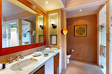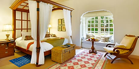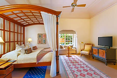 The Oberoi Rajvilas Jaipur offers unique 5-star accommodations in Jaipur City. Set amid beautiful greenery, this luxurious property features a pool, 3 dining options and free on-site parking. Free WiFi is available in the rooms of the property. Decorated with modern interiors and neutral color tones, the stylish rooms offer large windows that overlook the greenery. Each well-appointed room is equipped with a sofa seating area, flat-screen TV and bathroom with a bathtub. Guests can exercise at the gym or indulge in body treatments at the spa and salon. Ticketing and car rental arrangements can be made at the tour desk. Available for all-day dining, Surya Mahal & Courtyard serves international dishes and fine wines. Rajmahal restaurant offers Indian specialties for dinner, while wines and spirits are available at Rajwada Library Bar. Jaipur Oberoi Rajvilas is 5 mi from the City Center and 6.2 mi from Hawa Mahal. It is 8.7 mi from Jantar Mantar, Jaipur Railway Station and a 25-minute drive from Jaipur Airport. A mandatory meal supplement (Including IMFL) of INR 14,750 and INR 20,060 per person is applicable for guests staying on 24th December and 31st December respectively, payable at the hotel directly.