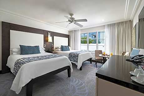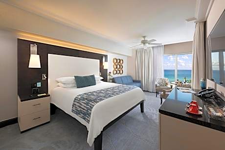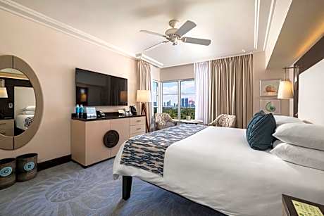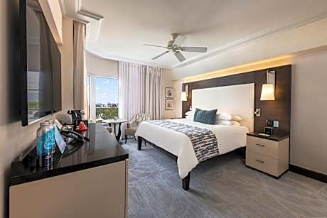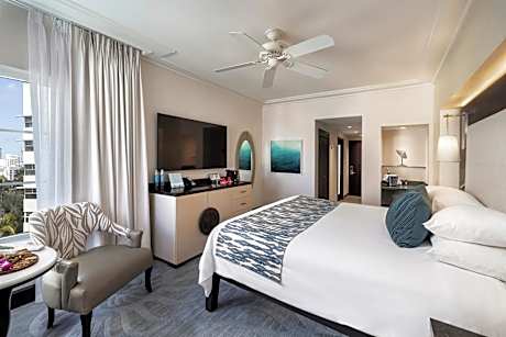 This oceanfront hotel on Miami Beach has an outdoor pool in a tropical garden setting. Rooms feature Chromecast streaming. Select rooms have a separate seating areas. All rooms at the Palms Hotel & Spa have flat-screen TVs. Guests will find a work desk and ironing facilities, as well as Lather® toiletries. Views from the rooms include the hotel gardens, the cityscape or the Atlantic Ocean beaches. The on-site The Palms AVEDA Spa offers a variety of body care services. There’s Wi-Fi in the guest business center and throughout the hotel. Along with the pool, the hotel has a fitness center and is adjacent to the city pedestrian boardwalk. Guests can enjoy al fresco dining at Essensia Restaurant, which features sustainably-sourced ingredients prepared to showcase seasonal favorites. The hotel’s Tiki Bar provides poolside drinks. Guests can also use on-site beach amenities like lounge chairs and towels, along with food and beverage service. The Palms Hotel & Spa is one mile from the Julia Tuttle Causeway on Interstate 195. The Bayshore Municipal Golf Course is 2 miles from the hotel and Miami International Airport is 12 miles away.