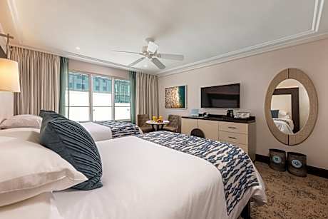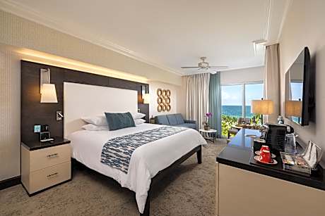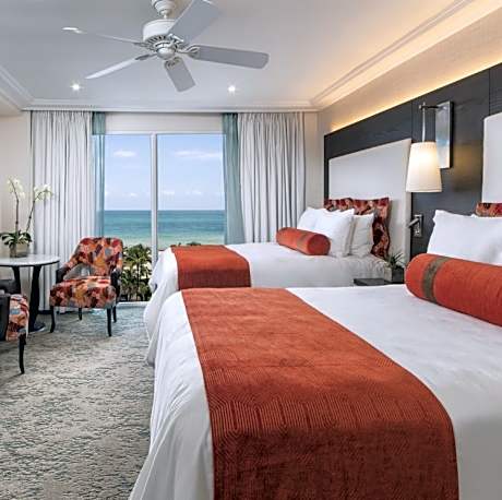 This oceanfront hotel on Miami Beach has an outdoor pool in a tropical garden setting. Rooms feature Chromecast streaming. Select rooms have a separate seating areas. All rooms at the Palms Hotel & Spa have flat-screen TVs. Guests will find a work desk and ironing facilities, as well as Lather® toiletries. Views from the rooms include the hotel gardens, the cityscape or the Atlantic Ocean beaches. The on-site The Palms AVEDA Spa offers a variety of body care services. There’s Wi-Fi in the guest business center and throughout the hotel. Along with the pool, the hotel has a fitness center and is adjacent to the city pedestrian boardwalk. Guests can enjoy al fresco dining at Essensia Restaurant, which features sustainably-sourced ingredients prepared to showcase seasonal favorites. The hotel’s Tiki Bar provides poolside drinks. Guests can also use on-site beach amenities like lounge chairs and towels, along with food and beverage service. The Palms Hotel & Spa is one mile from the Julia Tuttle Causeway on Interstate 195. The Bayshore Municipal Golf Course is 2 miles from the hotel and Miami International Airport is 12 miles away.