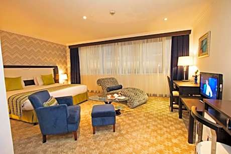 Overlooking Nairobi National Park, this hotel is 10 minutes’ drive from Jomo Kenyatta International Airport. Each room includes a flat-screen TV with satellite channels. Free parking is provided. All air-conditioned rooms feature a seating area, a work desk and tea and coffee-making facilities at The Panari Hotel - Near Jomo Kenyatta International Airport Nairobi. An private bathroom with a bathrobe, slippers and a hairdryer is also offered. Guests can take advantage of the fitness center with a fully equipped gym and a business center at Nairobi Panari Hotel. An indoor pool is also featured. A sauna, steam baths and a spa are available on site. The Ruby Lounge and Shooters & Dips serves cocktails daily. The Red Garnet Restaurant offers international cuisine. Panari Sky Center features gift shops and a pharmacy. Nairobi city center is 4.3 miles from The Panari Hotel - Near Jomo Kenyatta International Airport Nairobi. Nairobi National Park is 30 minutes’ drive from the resort.