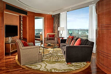 The Park Tower Knightsbridge, a Luxury Collection Hotel, London is a 5-star hotel located in the heart of Knightsbridge, just next door to Harvey Nichols and Hyde Park, and a short walk away from Harrods and other designer stores. It offers award-winning dining and stunning views of London. The building’s circular tower design ensures that each of the 280 luxury rooms has impressive views of London's skyline. All rooms feature an iPod dock and a TV with on-demand movies and internet access. Recognized for their expertize of the destination, the hotel head concierge and his team are on hand to help uncover the unexplored treasures of Knightsbridge and beyond. To celebrate the culture and traditions of Great Britain, The Park Tower Knightsbridge, a Luxury Collection Hotel, London, features a luxurious Afternoon Tea, held in the Knightsbridge Lounge. The Hyde bar is also inspired by British members clubs, serving whiskeys and cigars in a refined setting.