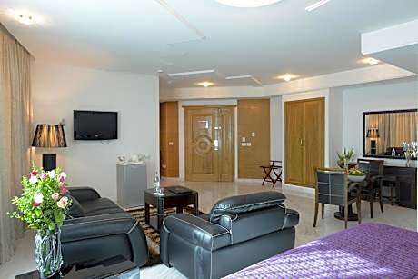 In Tunis, The Penthouse Suites Hotel features an outdoor pool, skating rink and a restaurant. These independent accommodations feature free Wi-Fi. The property is 3 miles from Belvedere Parc and 5 miles from Habib Bourguiba Avenue. Each suite includes a TV, air conditioning and a sitting area. There is a kitchen with a dishwasher and a microwave. Featuring a bathtub or shower, shared bathrooms also provide a hairdryer and bathrobes. At The Penthouse Suites Hotel there is a garden and a snack bar. Other facilities like dry cleaning and laundry facilities are available. Activities in the area include bowling. The property provides free parking. If you feel like exploring the area, check out Medina (5 miles). Tunis Airport is 3 miles from the property.