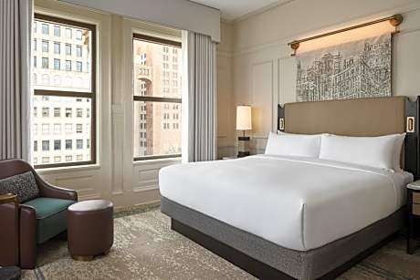 Offering a full-service spa, salon and Victorian art collection, this 4-star hotel is located in downtown Milwaukee. The property is a 10-minute walk from the Milwaukee Art Museum and provides WiFi to guests. The guest rooms at The Pfister Hotel feature a flat-screen TV and MP3 docking station. The private bathroom has spa bath amenities, a hairdryer and telephone. Some rooms include views of downtown Milwaukee or Lake Michigan. Guests can enjoy the Pfister's indoor pool or the well-equipped gym with cardio equipment. Hotel shops and a business center are also available. Blu, the martini bar located on the hotel's 23rd floor, boast excellent views of the city. The Mason Street Grill serves American cuisine including wood grilled steaks, sandwiches and homemade desserts. Room service is available from 6 am – 12 am daily.