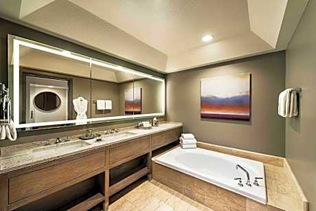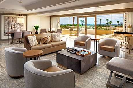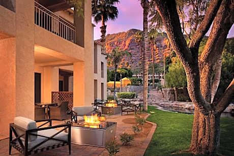 Set on 250-acres at the base of Camelback Mountain, this luxury Phenix resort features 9 swimming pools, a golf course, a wellness spa and 8 restaurants. Guest rooms include a private patio or balcony. A 40-inch flat-screen cable TV, iHome docking station, premium Italian linens and modern Southwestern artwork are featured in each spacious guest room at The Phoenician Resort. An oversize private bathroom with Italian marble accents, oval bathtub, separate shower, plush bathrobes, make-up mirror and upscale toiletries is also provided. Modern American cuisine at Mowry & Cotton, sophisticated steakhouse selections at J&G Steakhouse, and polished pub grub at The Phoenician Tavern are just 3 of the dining options at The Phoenician. Poolside, golf course and in-room dining are available as well as a traditional English afternoon tea served daily in the resort lobby. The 22,000 square foot Phoenician Spa offers massage therapy, body treatments, a full-service salon and a fitness center. 9 swimming pools, including a children’s pool with 197-foot water slide and a custom mother-of-pearl tiled pool, are provided for guest relaxation. An 18-hole championship golf course, fully-stocked pro golf shop, driving range, chipping and putting green are located on site. A family activity center with video games, as well as children’s day programs, are available. Shopping and dining in Old Town Scottsdale is less than 2 miles away. Phenix Sky Harbor International Airport is 9 miles away from The Phoenician Resort.