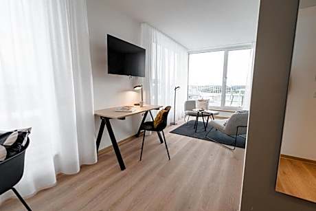 Providing garden views, the place Herzogenaurach - Serviced Apartments in Herzogenaurach features accommodations and a shared lounge. Housed in a building dating back to 2022, this condo hotel is 17 miles from Nuremberg Central Station and 17 miles from Meistersingerhalle Congress & Event Hall. There's a sun terrace and guests can make use of free Wifi, free private parking, and an electric vehicle charging station. At the condo hotel, every unit has air conditioning, a seating area, a flat-screen TV with satellite channels, a kitchenette, a dining area, a safety deposit box, and a private bathroom with a walk-in shower, slippers, and a hair dryer. A microwave, a toaster, and fridge are also provided, as well as a coffee machine and a kettle. At the condo hotel, units are fitted with bed linen and towels. Buffet and continental breakfast options with fresh pastries, fruit, and juice are available. There is a coffee shop, and a mini-market is also available. For guests with children, the condo hotel provides an indoor play area and outdoor play equipment. A bicycle rental service is available at the place Herzogenaurach - Serviced Apartments, while cycling and hiking can be enjoyed nearby. Max-Morlock-Stadion is 19 miles from the accommodation, while Nürnberg Convention Center is 20 miles away. Nurnberg Airport is 10 miles from the property.
