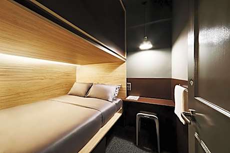 This air-conditioned female dormitory features a side entrance for each capsule. Capsules are equipped with a personal reading light and an individual power socket. Beds are equipped with 300-count cotton sheets and a duvet. Bathroom facilities are shared. This dorm is located on a female only floor.