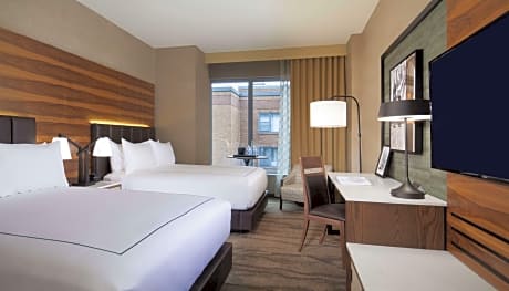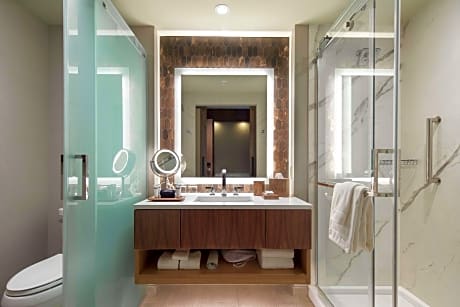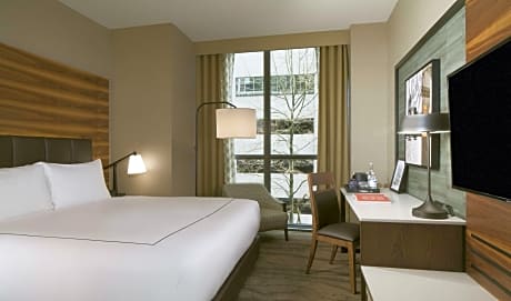 The Porter Portland's rooms are designed for comfort and style, featuring 50"" flat-screen TVs, refrigerators, coffee machines, and private bathrooms with bathrobes and slippers. Some rooms offer picturesque river views, enhancing the overall experience. Complimentary WiFi is available throughout the hotel.