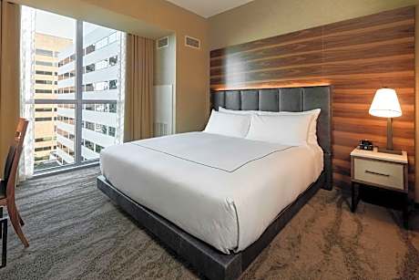 Guests can enjoy a variety of dining options at the on-site restaurant, which serves Italian and American cuisine. The rooftop patio and bar provide a unique setting to relax and enjoy panoramic views of the city. Valet parking ensures a hassle-free stay for those traveling by car.