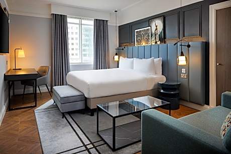 The Queens hotel is the heart of Leeds city center, and offers a Pan-Asian fusion dining restaurant and luxurious 4-star rooms with free WiFi. Opened in 1937, the historic and award-winning Queens Hotel is just a few minutes' walk from Leeds Railway Station. Unveiling a lavish £16million transformation in summer 2021, with 232 stylish and comfortable bedrooms. The rooms are sumptuously decorated, each having air conditioning and a flat-screen TV, also featuring a modern bathroom and a work desk. Trinity Leeds Shopping Center is less than a 5 minute walk away.