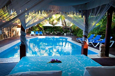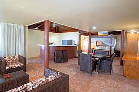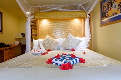 Discover paradise at the Rarotongan Beach Resort & Spa, nestled on Rarotonga's finest beach and crystal-clear lagoon. Located on the sought-after southwest sunshine coast, you'll find Aroa Lagoon Marine Reserve, a snorkeler's paradise. Enjoy complimentary activities like hand-feeding fish, night snorkeling safaris, and traditional Polynesian crafts. The resort offers beachfront suites, honeymoon bungalows with private pools, and luxurious three-bedroom villas. For couples, a personal wedding planner can create your dream wedding beside the 'Lagoon of Love. ' Experience the true spirit of the South Seas at The Rarotongan.