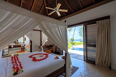 Set on its own stretch of white sand beach, The Residence Zanzibar is a 55-minute drive from Zanzibar City. The property features a garden and offers free WiFi to its guests. Adults can enjoy a relaxing drink at the Jetty Lounge Bar. Each villa at the property comes with views of the gardens and the pool while some have ocean views. The units also feature air conditioning and each has its own private pool and flat screen TV with satellite channels. You will also find a mini-bar and coffee maker in each The Residence Zanzibar villa. The units also have a private bathroom with free toiletries. Guests can enjoy an American breakfast served daily at the property. There are also two restaurants on site as well as butler service on request. The accommodations also features a glass walled swimming pool spa and wellness center and a fitness center. Area activities include snorkeling, visits to the Jozani Forest Reserve and dolphin safaris. The village of Kizimkazi is only 20 minutes away by car. Abeid Amani Karume International Airport is set 35 mi from The Residence Zanzibar. The property offers airport shuttle service upon request.