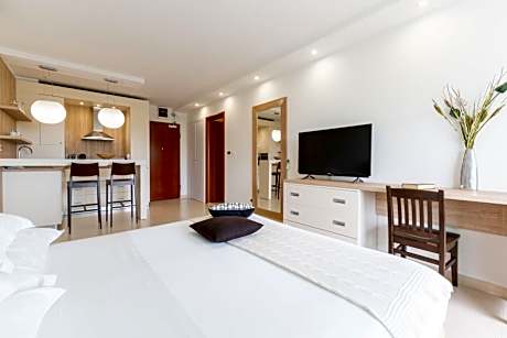 The Residence Aparthotel in Podstrana is nestled in a picturesque landscape of pine woods, just a short walk from the beach. It offers luxuriously appointed accommodations with garden or sea views. The suites and apartments have air conditioning, mini-bars and tea/coffee makers. Podstrana has many restaurants serving local Dalmatian specialties. It is only 5 mi east of Split, where you can visit Diocletian’s Palace and the Mestrovic Museum. Split Airport is only 16 mi from Podstrana. The Split port and ferry service is 5 mi or 10-12 minutes by car.
