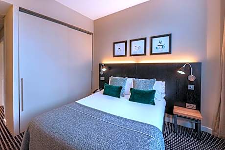 This cozy Small Double room is consisted of of a plush double bed, as well as a well-appointed mini-kitchen and sleek private bathroom. No wheel chair access. Not suitable for those with reduced mobility. This room cannot accommodate a baby cot. Access to the bed is from one side only.