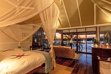 Featuring an outdoor swimming pool, The River Club is located on the banks of the Zambezi River, 7.5 mi from Livingstone. There is a fully equipped private bathroom with bath and a hair dryer. Each unit is ensuite and some have a private pool. All suites have a private deck with hammock offering beautiful river fontage views. The daily breakfast offers continental or à la carte options. Guests can dine in the on-site restaurant, which serves a variety of British, Italian and European dishes and also offers gluten-free and vegetarian options.The lodge also offers a kosher-lite or strictly kosher kitchen for observant guests (advance arrangements to be made) The lodge offers a range of activities and amenities including a fitness center, communal TV room, billards and a spa treatment center. Guests can also relax in the garden or on the sun terrace.