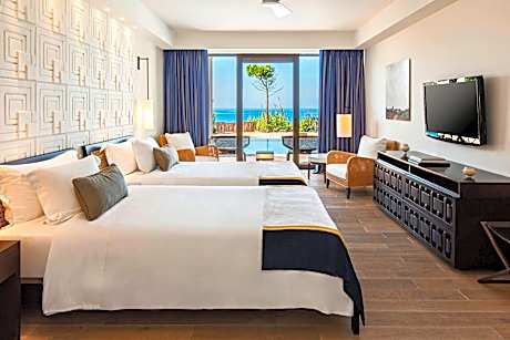 Set on a breathtaking stretch of sandy beach in the region of Messinia, The Romanos has 2 golf courses. A fitness center with indoor pool is featured. The exquisitely furnished rooms perfectly blend traditional Greek design with contemporary amenities. Each of the light-filled suites has a private pool. The breakfast is a feast which includes local honey. Gourmet delights range from Italian and Pan Asian restaurants, to a Souvlakerie stand and a Greek restaurant complete with a well-stocked wine cellar. Chill-out bars provide ideal places to relax and taking in the spectacular views. The Anazoe Spa offers Far Eastern and Greek inspired treatments. Indoor activities available include racquetball and basketball, as well as areas for meditation and workout classes. Guests are encouraged to discover the beauty and culture of Messinia and participate in traditional activities ranging from the art of olive-oil to wine-making. UNESCO World Heritage Sites, including famous Olympia, Mystras and the Temple of Apollo Epicurius are all within driving distance.