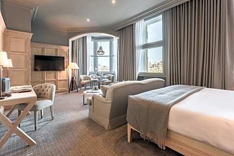 Overlooking Edinburgh Castle and Waverley Station, the 4-star Scotsman Hotel was originally built in 1905. This majestic, listed building was once The Scotsman newspaper. Each unique room and suite at the Scotsman Hotel features individual features, including curved corner window bays with scenic views of the city and a marble-tiled private bathroom. Guests can enjoy luxury Egyptian cotton linen, a 48-seat cinema, free Wi-Fi, free Scotsman Newspaper, and a privacy hatch for 24-hour room service. Located a 1-minute walk from the Royal Mile and Princes Street, this hotel offers discounted parking, available at Edinburgh Waverley Station car park (long stay) on New Street, 5-10 minutes' walk away.