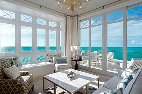 The Shore Club boasts a variety of outdoor pools, including a year-round outdoor pool complemented by a sun terrace, ideal for soaking up the tropical sun. The resort's rooms and suites are thoughtfully designed, with select units offering stunning views of the sea or pool, and a seating area where guests can unwind.