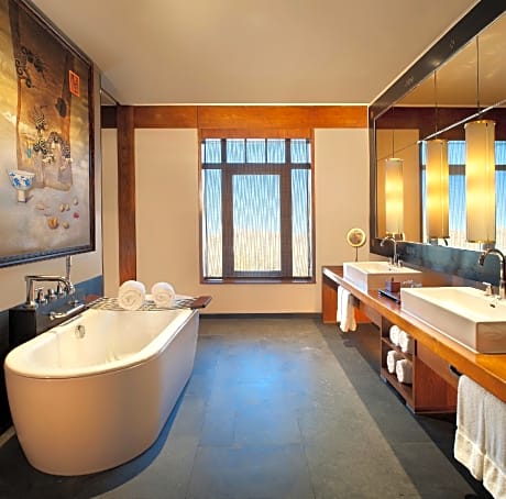 Great care is taken to ensure guests experience comfort through top-notch services and amenities. Parking is accessible, supplied by the hotel for guests who arrive by car. Effortlessly plan your daily activities and travel requirements with concierge service and safety deposit boxes provided by the front desk services.During leisurely days and evenings, in-room amenities such as room service and daily housekeeping enable you to maximize your stay in the room. Crafted for coziness, every guestroom provides an array of features, guaranteeing a tranquil night's sleep while maintaining the level of comfort.For certain chosen rooms, guests can enjoy in-room amusement like television and cable TV as a part of their stay.Rest assured that your hydration needs will be met, as some guestrooms are equipped with a refrigerator, a coffee or tea maker, instant tea and mini bar. Maintain your cleanliness and comfort using a hair dryer, toiletries and bathrobes available in select guest restrooms. Each morning at The St. Regis Lhasa Resort, a scrumptious, homemade breakfast kick-starts the day. Begin your holiday mornings right with your essential cup of coffee, offered daily at the cafe on-site.Experience a fantastic evening effortlessly! Relish an entertaining night without venturing beyond the confines of the bar.