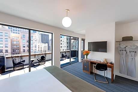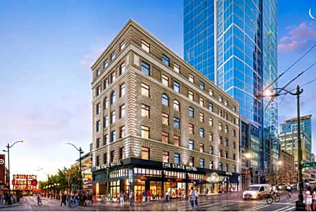 Conveniently located in Seattle, The State Hotel provides air-conditioned rooms, a fitness center, free WiFi and a terrace. This 4-star hotel offers room service and a 24-hour front desk. Guests can use a bar. Guest rooms at the hotel are equipped with a flat-screen TV with cable channels and a safety deposit box. Featuring a private bathroom with a shower and a hairdryer, certain rooms at The State Hotel also offer a city view. The rooms include a desk. At the accommodation you'll find a restaurant serving American cuisine. Vegetarian, vegan and gluten-free options can also be requested. Popular points of interest near The State Hotel include Pocket Beach, Lumen Field and Space Needle. Seattle Lake Union Seaplane Base Airport is 1.2 miles away.