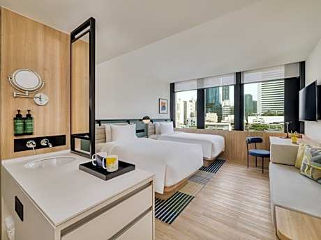 Experience an abundance of unparalleled facilities and features at voco Bangkok Surawong by IHG. Maintain seamless communication using the complimentary Wi-Fi at hotel.Effortlessly arrange transportation to and from the airport using the hotel's airport transfer services. Discovering Bangkok becomes even more accessible, thanks to the taxi amenities provided at the hotel. For visitors traveling by automobile, complimentary parking is available.During your stay at this fantastic hotel, the attentive front desk personnel can provide you with a range of amenities such as concierge service, express check-in or check-out, luggage storage and safety deposit boxes.At the hotel, utilize the on-site dry cleaning service and laundry service to maintain your beloved travel attire fresh, allowing you to bring fewer clothes.Craving relaxation? Make the most of your stay at the voco Bangkok Surawong by IHG with convenient amenities like 24-hour room service, room service and daily housekeeping at your disposal.For visitors wishing to smoke, designated smoking zones can be found. At voco Bangkok Surawong by IHG, every guestroom is provided with convenient amenities and fittings to ensure a comfortable stay. Enhance your experience at hotel with the knowledge that certain rooms are equipped with linen service, blackout curtains and air conditioning for your convenience.At voco Bangkok Surawong by IHG, each visit offers an array of intriguing room configurations, featuring accommodations with separate living room and balcony or terrace, ensuring a distinct experience every time. Certain rooms offer in-room amusement features such as the in-room video streaming for your enjoyment. In select rooms within the hotel, bottled water, a coffee or tea maker, instant coffee, instant tea and mini bar is available to cater to your requirements when desired. It is worth noting that certain guest bathrooms feature a hair dryer, toiletries, bathrobes and towels for your convenience. Begin your day with a scrumptious on-site breakfast available each morning at voco Bangkok Surawong by IHG. Begin your day feeling refreshed and invigorated as you enjoy a delightful cup of quality coffee available at the cafe situated within the hotel. At the hotel, an assortment of easily accessible and delicious meal choices are available to satisfy your appetite whenever it strikes.Enjoy an entertaining evening with your fellow travelers at the hotel's bar. At voco Bangkok Surawong by IHG, guests can access vending machines that provide light snacks and beverages 24 hours a day. During your stay at hotel, an array of engaging activities and amenities guarantees a delightful experience.Be sure to drop by the pool at hotel at least once during your stay. At voco Bangkok Surawong by IHG, the poolside bar provides an excellent incentive to enjoy extended hours in your swimwear.Discover the fitness amenities at hotel to maintain your health and strength during your getaway.