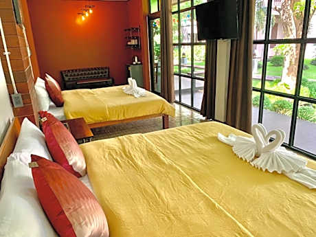 Great care is taken to ensure guests experience comfort through top-notch services and amenities.Stay connected with your associates, as complimentary Wi-Fi is available during your entire visit. To facilitate your arrival and departure, you can pre-book airport transfer services prior to checking in.When arriving by car, you'll be grateful for the on-site complimentary parking at resort villa.The resort villa offers reception amenities including express check-in or check-out and luggage storage to ensure a comfortable stay for guests.Whether you're here for an extended stay or simply require fresh garments, the resort villa ensures your cherished travel attire remains spotless and accessible with the convenience of laundry service located on the premises. The resort villa's daily housekeeping ensures an excellent option for your stay. To ensure the well-being and convenience of all visitors, smoking is strictly prohibited throughout the entire resort villa. Smoking is permitted solely in the specified smoking zones allocated by resort villa. In order to ensure the utmost level of relaxation, the guestrooms feature an inviting design and are equipped with all basic necessities, creating a delightful stay experience.To ensure a pleasant stay, a selection of rooms at resort villa come furnished with linen service, blackout curtains and air conditioning, all designed with your ease in mind.Several chosen accommodations at Gen2 Boutique by Baanmo resort sukhothai have a balcony or terrace incorporated into the room design. Selected rooms offer in-room amusement like television as a source of entertainment for guests to enjoy. Within specific rooms, a refrigerator, bottled water, a coffee or tea maker and instant coffee is conveniently available for your use. Understanding the significance of bathroom facilities in enhancing visitor contentment, resort villa offers a hair dryer, toiletries, bathrobes and towels within a few chosen chambers. Each day, arise to a delightful complimentary morning meal at Gen2 Boutique by Baanmo resort sukhothai.