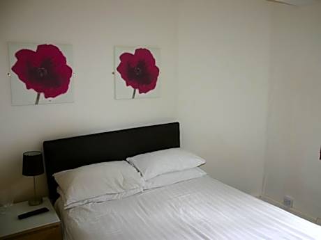 This slightly smaller double room looks onto the roof garden. There is a flat-screen TV and and an private bathroom with free toiletries.