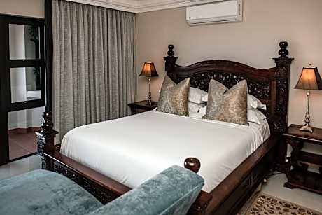 This unique boutique hotel with sweeping views of the Indian Ocean is located 34 mi from King Shaka International Airport, in the coastal village of Amanzimtoti. The luxurious rooms at the View Boutique Hotel & Spa are surrounded by lush tropical gardens and swimming pools. The suite is fully equipped with satellite TV, WIFI, Mini-Bar and Air-Conditioning. Guests can relax in a spa-room with private veranda. Award-winning cuisine is served alfresco or in the elegant dining room which features stunning views. World-class golf-courses, beautiful beaches and the dove site Aliwal Shoal, are all nearby.