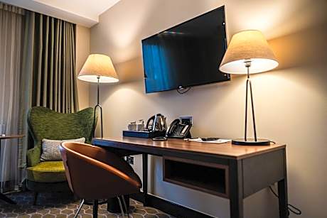 Offering a spa center and sauna, The Warwickshire Hotel and Country Club is located 14.8 miles from Stratford-on-Avon, and 2.2 miles from Warwick Castle. The hotel has a fitness center and indoor pool, and guests can enjoy a drink at the bar. Free private parking is available on site. Each room at this hotel features a flat-screen TV and private bathrooms with a hairdryer and complimentary toiletries. Additional amenities include free tea/coffee making facilities and an in-room safe. The Warwickshire Hotel and Country Club features two 18-hole golf courses, a par 3 short course, driving range and tuition. The property offers a fitness center and a wet spa. There is also a children-only pool available for families. Guests can also enjoy The Warwickshire Hotel and Country Club's 3.1 mi jogging trail, which is located in the property's arboretum. Warwick Racecourse is 2.4 miles from The Warwickshire Hotel and Country Club, while Warwick Hospital is 1.5 miles away. The nearest airport is Birmingham Airport, 11.8 miles from The Warwickshire Hotel and Country Club. At this property we have electric vehicle chargers available at an additional cost.