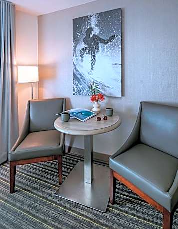 This San Diego hotel is located along the ocean and is 1 mile from Mission Bay Park. This beachfront hotel features an oceanfront pool, bike rentals and rooms with balconies. Each guest room at the The Wayfarer San Diego is equipped with a 50" LCD TV, a refrigerator, coffee maker and private patio or balcony. Guests can watch an in-room movie. The The Wayfarer San Diego offers free WiFi throughout the entire property and a 24-hour front desk. Guests can relax in the hot tub or use the outdoor picnic area. Business services and laundry facilities are also available. The spacious lobby is also equipped with retro video games. This oceanfront hotel is 10 minutes' drive to Sea World Park and within 20 minutes' drive of the University of California. The San Diego Bay area offers many activities including water sports, bicycling, surfing, tennis and shopping.