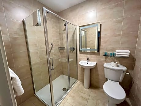 Offering free toiletries, this quadruple room includes a private bathroom with a shower and a hairdryer. The quadruple room has carpeted floors, a seating area with a flat-screen TV with streaming services, a private entrance, a tea and coffee maker, as well as a wardrobe. The unit has 3 beds.
