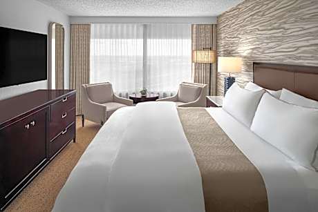 Located adjacent to the Dallas Fort Worth Airport, this hotel offers an outdoor rooftop pool and free airport shuttle service. Free WiFi and parking are available. A flat-screen, high-definition cable TV with pay-per-view films is featured in each room. A spacious work desk, ironing facilities and climate control are also offered. The BlueFire Grille at the DFW Airport Westin serves Southwestern cuisine for lunch and dinner. Guests can also have a cup of Starbucks coffee at The Cafe or a snack at the Market. The Westin Dallas Fort Worth Airport features a fitness room and a business center. Guests can relax with in-room spa services or order a meal from the 24-hour room service. The AT&T Stadium, home of the Dallas Cowboys, is located 17 mi away from the property. Irving Convention and Visitors Bureau is within 5 mi of the hotel.