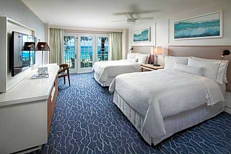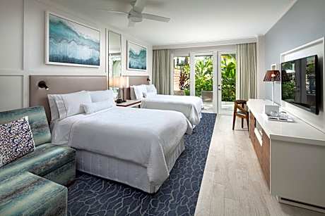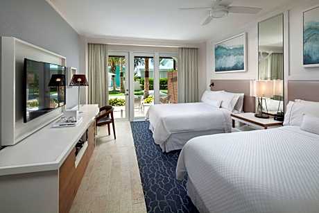 Most rooms feature a private patio or balcony, providing tropical views to enhance the stay. Each bright room is equipped with a marble bath, flat-screen TV, and mini fridge, ensuring comfort and convenience. Guests can indulge in various dining experiences, from oceanfront meals at Beach House to island flavors at Ferdinands, along with five other restaurants and lounges.