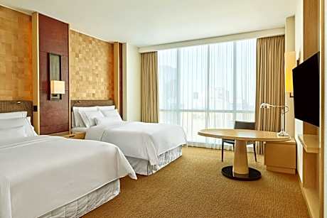 The Westin Lima Hotel & Convention Center features elegant rooms styled in tan and off-white hues, fully carpeted and equipped with modern amenities. Guests can enjoy flat-screen satellite TVs, mini-bars, in-room safes, coffee makers, and the luxurious Heavenly Bed with goose feather duvets. Each room offers city views, walk-in closets, and spacious bathrooms with separate walk-in showers and tubs. The hotel also provides a business center, beauty salon, and exclusive Westin Club access for suite guests. The Westin Lima is pet-friendly, offering heavenly pet beds for furry companions. Explore Lima with tours organized through Venturia travel agency, and experience the best of the city from this prime location.