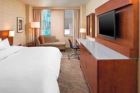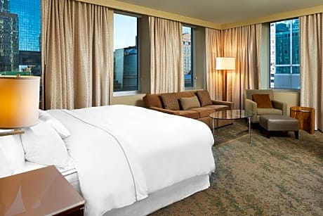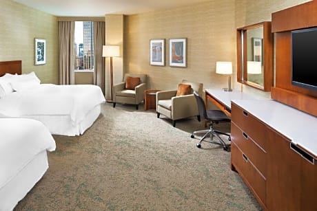 This downtown Minneapolis hotel is 4 minutes from the Minneapolis Convention Center and features an on-site restaurant and indoor pool. Modern rooms are furnished with a 42-inch flat-screen cable TV. Coffee machines and a hair dryer are also included in each of the rooms. Originally built in 1941 as a bank, The Westin Minneapolis retains the building’s history with B.A.N.K. Restaurant and Lounge. Serving American cuisine all day, the restaurant has an open kitchen and oval bar. Free access to the gym and hot tub is provided to all hotel guests. Massage services are offered as well as a business center and an on-site gift shop. A refrigerator is standard in every spacious room at the Minneapolis Westin. Decorated with earth tones and wood furniture, all rooms include a seating area and laptop-compatible safety deposit box. The Mall of America, the country’s largest mall, and Minneapolis-Saint Paul International Airport are just 12 miles away.