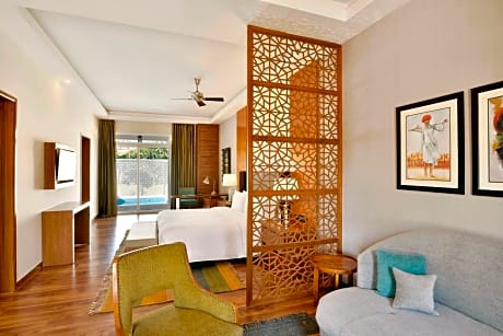 The Westin Pushkar Resort & Spa provides flawless service and all the necessary facilities for visitors.Stay connected with your associates, as complimentary Wi-Fi is available during your entire visit. To facilitate your arrival and departure, you can pre-book airport transfer services prior to checking in. The hotel offers taxi, car hire and shuttle amenities for your ease in navigating around Pushkar. When arriving by car, you'll be grateful for the on-site complimentary parking at hotel. The hotel offers reception amenities including concierge service, express check-in or check-out, luggage storage and safety deposit boxes to ensure a comfortable stay for guests. Should you require it, the tours can even assist you in booking tickets and securing reservations for the finest shows and events in the vicinity. Whether it's an extended stay or simply needing fresh attire, laundromat, dry cleaning service and laundry service provided by hotel ensures your cherished travel garments stay spotless and accessible.Your stay will be comfortable with the presence of 24-hour room service, room service and daily housekeeping as an in-room amenity for your relaxation and enjoyment. To ensure the well-being and convenience of all visitors, smoking is strictly prohibited throughout the entire hotel. In order to ensure the utmost level of relaxation, the guestrooms feature an inviting design and are equipped with all basic necessities, creating a delightful stay experience. Selected rooms offer in-room amusement like cable TV as a source of entertainment for guests to enjoy. Within specific rooms, instant tea and mini bar is conveniently available for your use.Understanding the significance of bathroom facilities in enhancing visitor contentment, hotel offers a hair dryer and bathrobes within a few chosen chambers. Start your day stress-free at The Westin Pushkar Resort & Spa as breakfast is made available for you on the premises.How about kicking off each day of your getaway with a delicious cup of coffee? At the hotel, relish in the invigorating taste of a freshly brewed, excellent coffee.Various excellent meal offerings at hotel ensure that enticing and easily accessible options are constantly available. Upon your arrival, don't miss experiencing bar for enjoyable in-house evening entertainment.Visitors wishing to create their personal culinary delights will appreciate the on-site BBQ facilities provided at this establishment. Throughout the day, engage in the entertaining activities available at The Westin Pushkar Resort & Spa.Unwind and conclude each day delightfully by stopping by massage, steam room, spa and sauna, ensuring a soothing experience. Unwind by the pool at hotel and cherish a leisurely moment. Enjoy a refreshing beverage al fresco at hotel's poolside bar savoring your preferred concoction.Guests who enjoy maintaining their fitness regimen while on holiday can visit the fitness center provided by hotel.