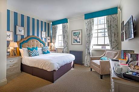 In the heart of the market town of Romsey The White Horse is just a few yards from Romsey Abbey. This 14th-century boutique hotel offers a brasserie and bright, elegant rooms. The hotel’s Georgian facade conceals a Grade II listed building, with individually styled rooms. Some feature original period features, while all have a flat-screen TV, free Wi-Fi, and a private bathroom. A mix of traditional and modern dishes is served in the award-winning Brasserie, which has views of the courtyard. The bar stocks real ales and a wide range of wines and whiskeys. The hotel is 10 minutes’ drive from the scenery of the New Forest, and there is fishing on the River Test just a mile away. Romsey’s boutique shops and restaurants are within 0.5 miles.