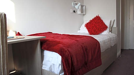 This single room has a electric kettle and cable TV. As breakfast is not provided, small snacks and water are provided in each room.