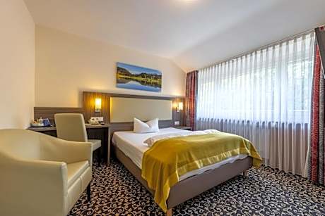 Set in the spa town of Bad Soden am Taunus, this hotel offers free Wi-Fi. The in-house Kronberger Restaurant offers German cusine. Thermen Hotel Bad Soden is located just 9.3 mi from the center of Frankfurt am Main. All rooms at Thermen Hotel Bad Soden feature satellite TV, a mini-bar and a desk. Each includes a private bathroom with a shower. At Thermen Hotel Bad Soden you will find a garden, a terrace and a bar. Other facilities offered at the property include luggage storage, dry cleaning and laundry facilities. An array of activities can be enjoyed on site or in the surroundings, including golfing, cycling and hiking. Bus and S-Bahn railway connections (30 minutes) link the hotel to the city center, the Frankfurt Messe Trade Fair and Frankfurt Central Station. Frankfurt Airport can be reached in 20 minutes by car. The property offers free parking.