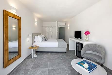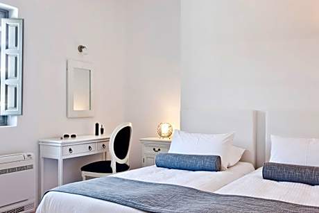In the beautiful Aghios Eustathios, in a distinguished point of the Caldera, lie Thermes Luxury Villas And Spa, named after the hot springs that are found close by, in a 656 feet distance from the villas. The 7 independent villas overlook the volcano, the islands of Thirasia, Aspronisi and Akrotiri and the most popular sunset of the world. Each theme villa takes its name from a Greek Goddess and allocates 3 bedrooms, private balcony and veranda with breathtaking view, private swimming-pool, chromo therapy and aromatherapy. The minimal architecture of Thermes, dome-shaped details, design bathrooms and spotless swimming pools are harmonized with the blue and white esthetics of the Aegean landscape. In the eastern side of Thermes guests have the chance to visit Megalochori, the traditional village Pyrgos and the tallest point of Santorini, Prophitis Ilias, or to visit the hot springs. When booking 3 rooms or more, different policies will apply.